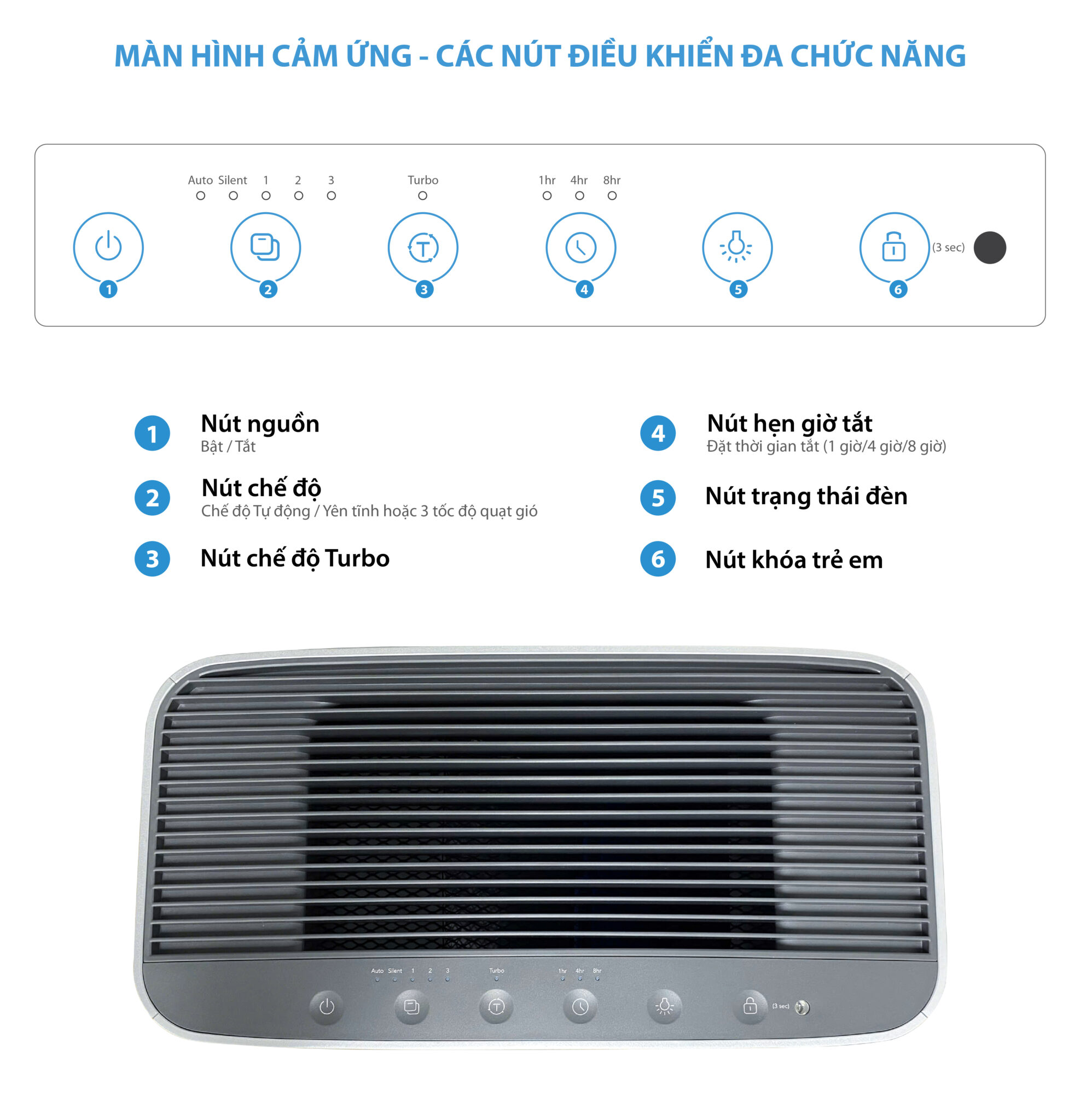 - Màn hình cảm ứng thân thiện với người dùng: chỉ cần chạm nhẹ để chọn chế độ
