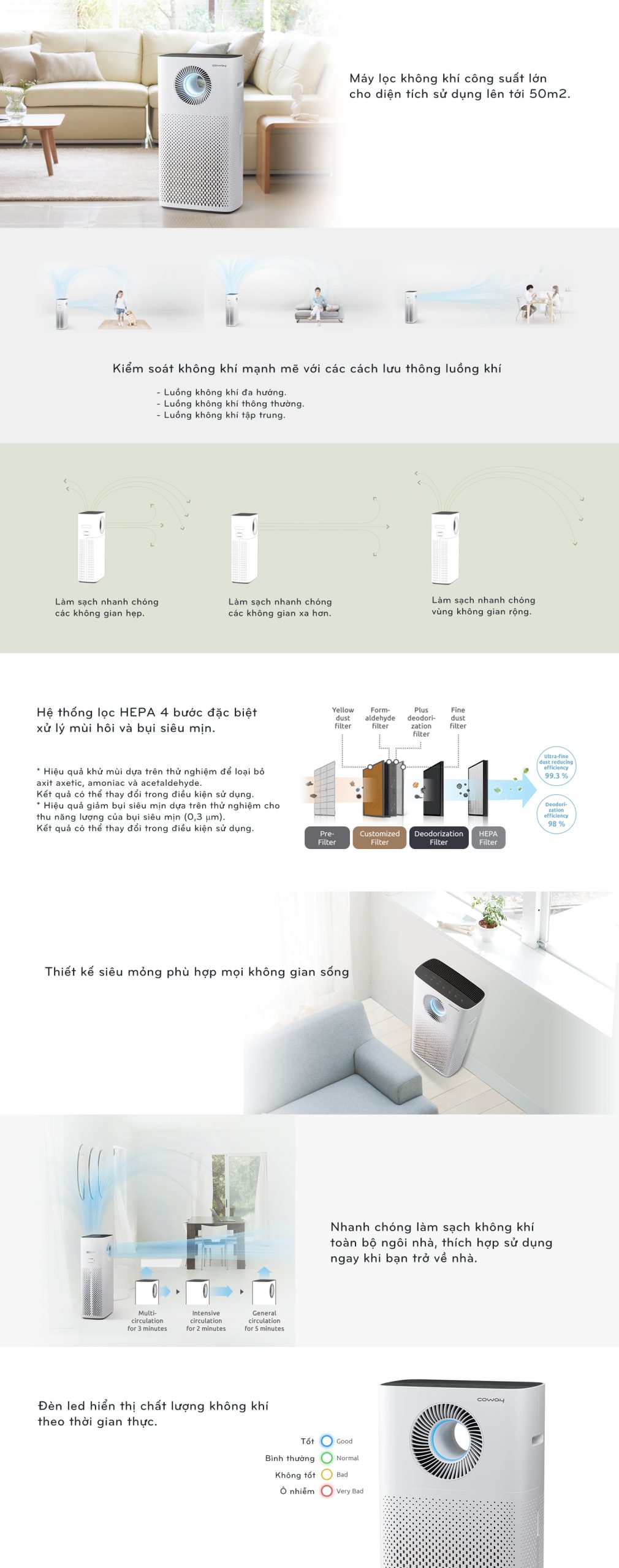 - Giải pháp không khí sạch với 4 bước lọc loại bỏ 99.99% bụi mịn PM 0.01