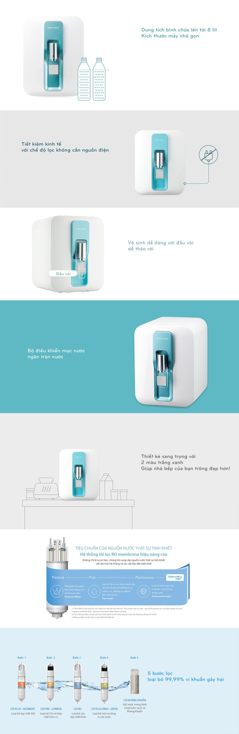 - Hệ thống lọc Coway RO1.0 chuyên sâu, khởi nguồn dòng nước sạch và tinh khiết